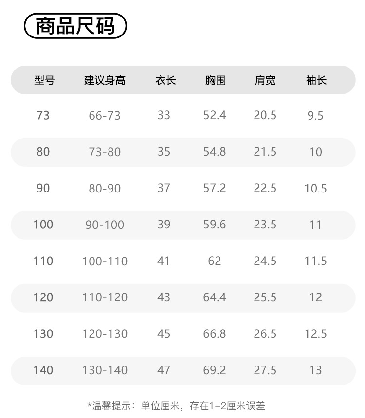 Short-sleeved shirts: Sizes 80 to 100 must not be less than 29.9 yuan, and sizes 110 to 140 must not be less than 34.9 yuan.