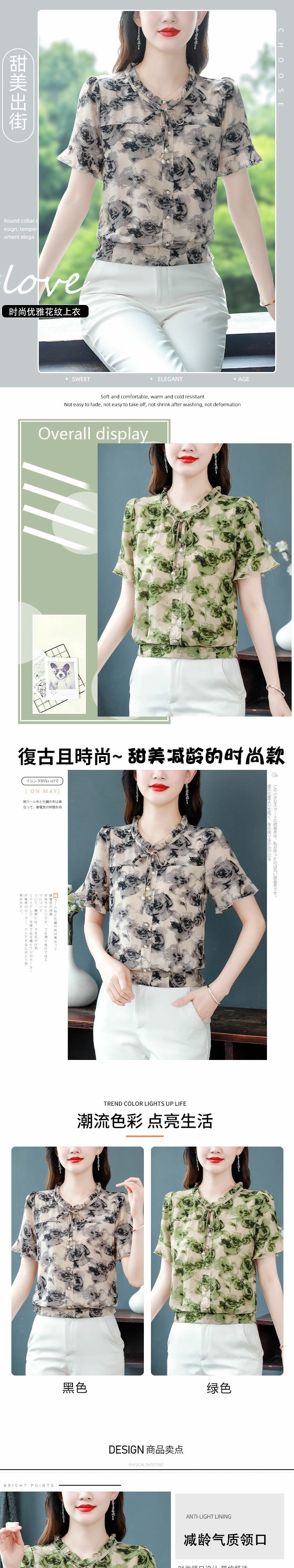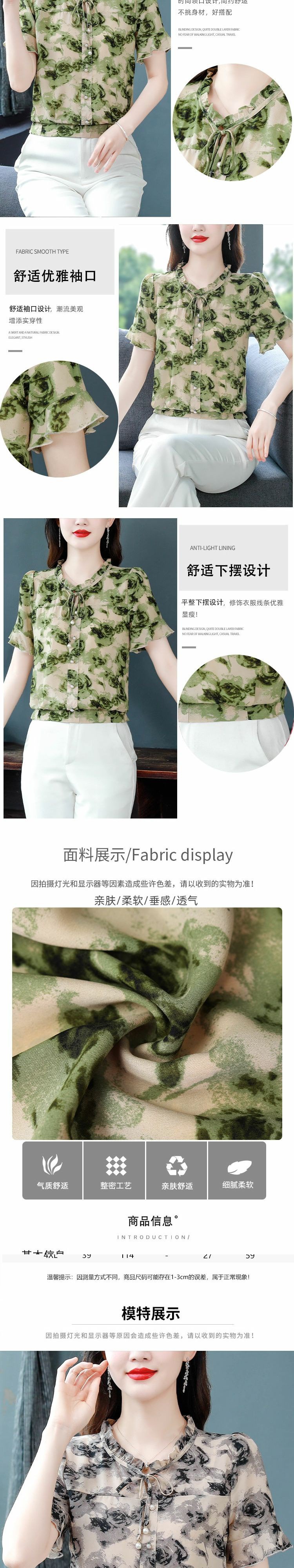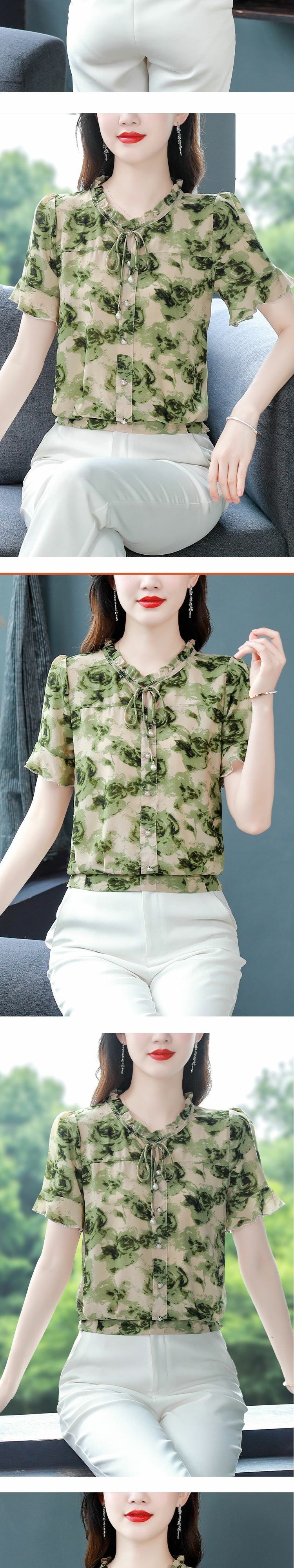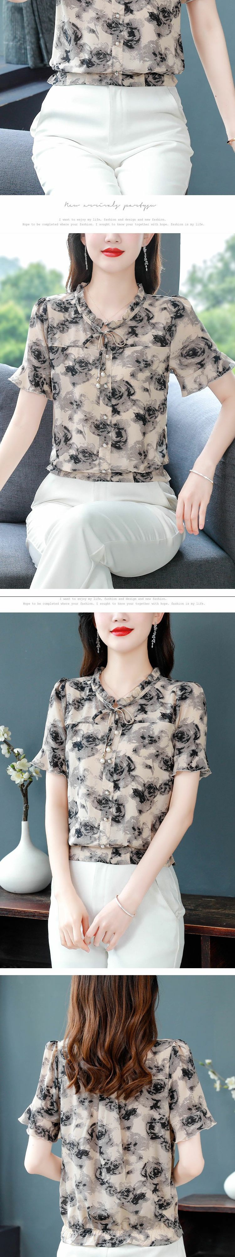 Youdaoplaceholder0 Stylish white floral chiffon blouse, women 's short-sleeved summer dress, loose ladies' small blouse, short top for middle-aged mothers, elegant