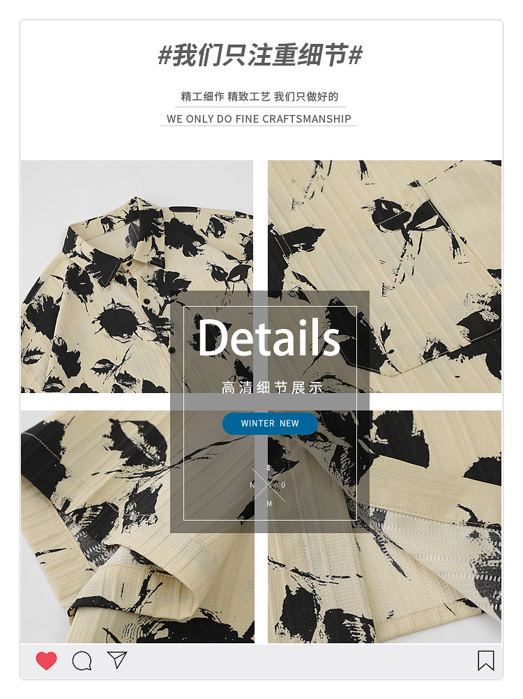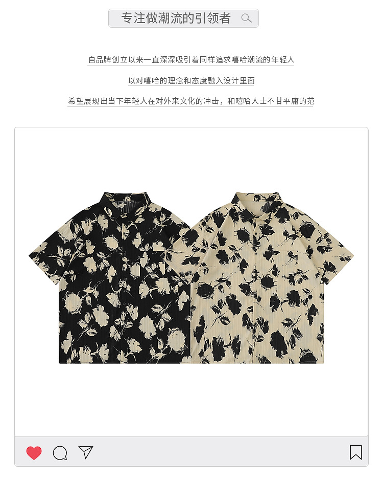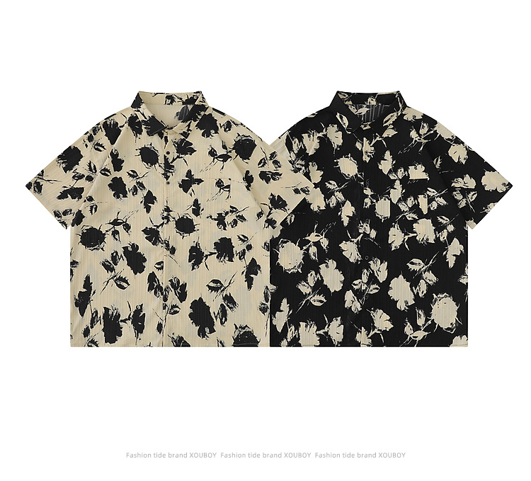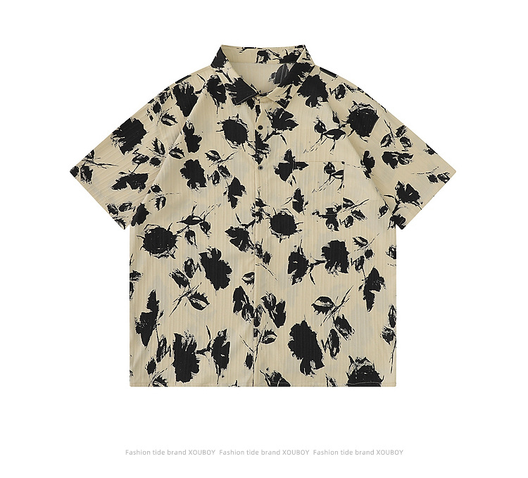 YPRS men's vintage vintage floral shirt, men's summer short-sleeved ins Hong Kong-style thin and loose cross-border shirt
