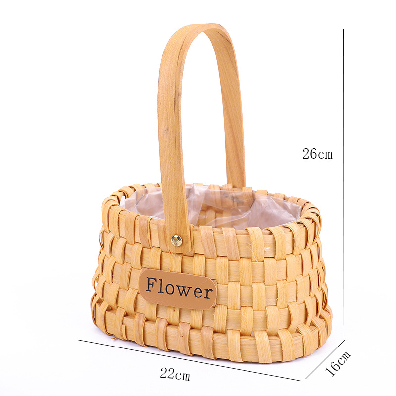 Yuanyang Korean-style wooden chip small flower baskets as souvenirs, bamboo woven hand-held flower baskets, flower art training, fresh flower baskets, picking baskets
