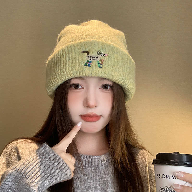Yunxu/Cute Little Dog Woolen Cap for Women 2025 New Autumn and Winter Warm Travel Versatile and face-enhancing Small Knitted Cap for men