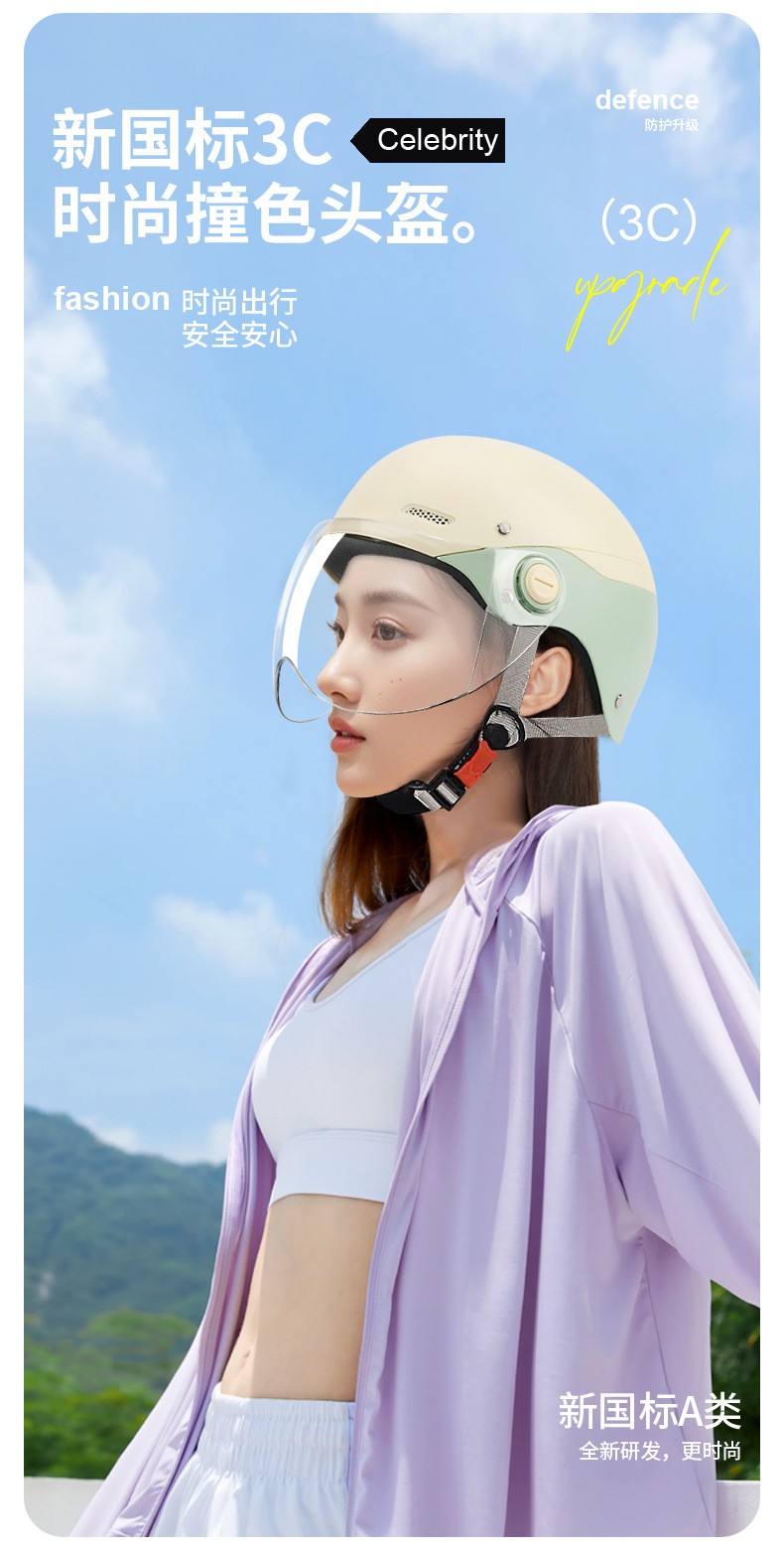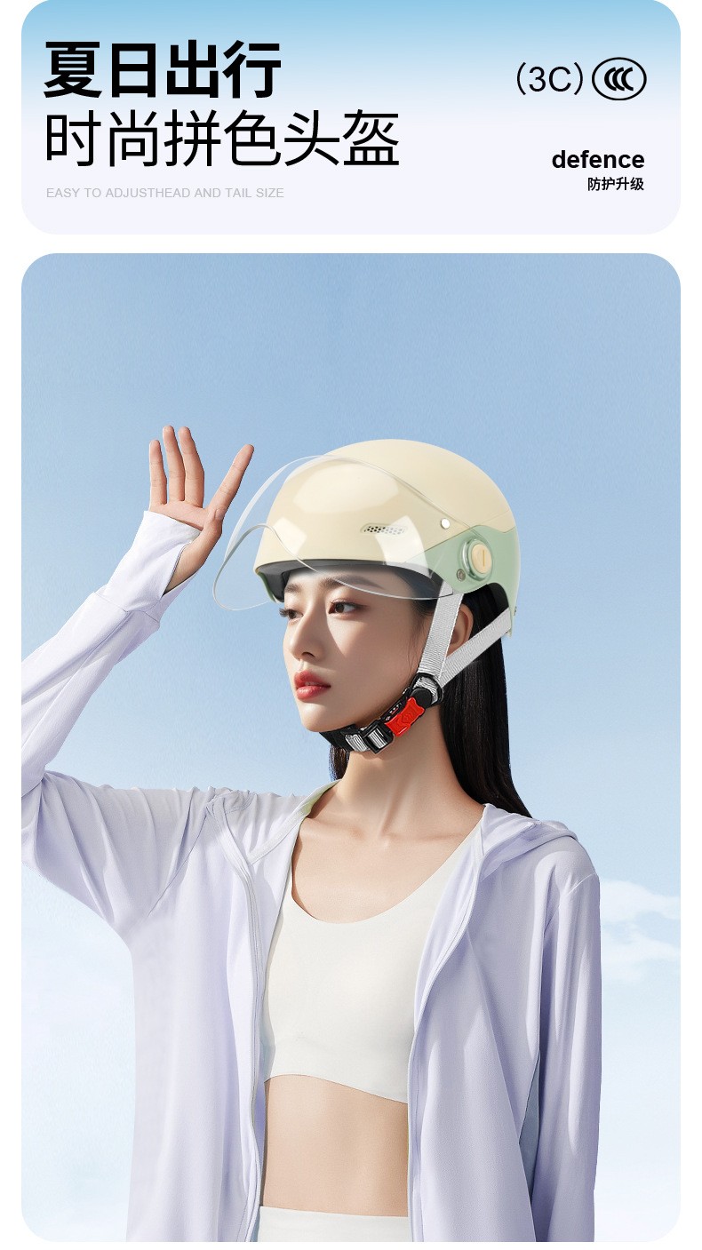 ZF-001 battery-powered electric bike helmet, men's and women's all-season motorcycle safety helmet, color-blocked half helmet, sun protection, adjustable riding protection helmet