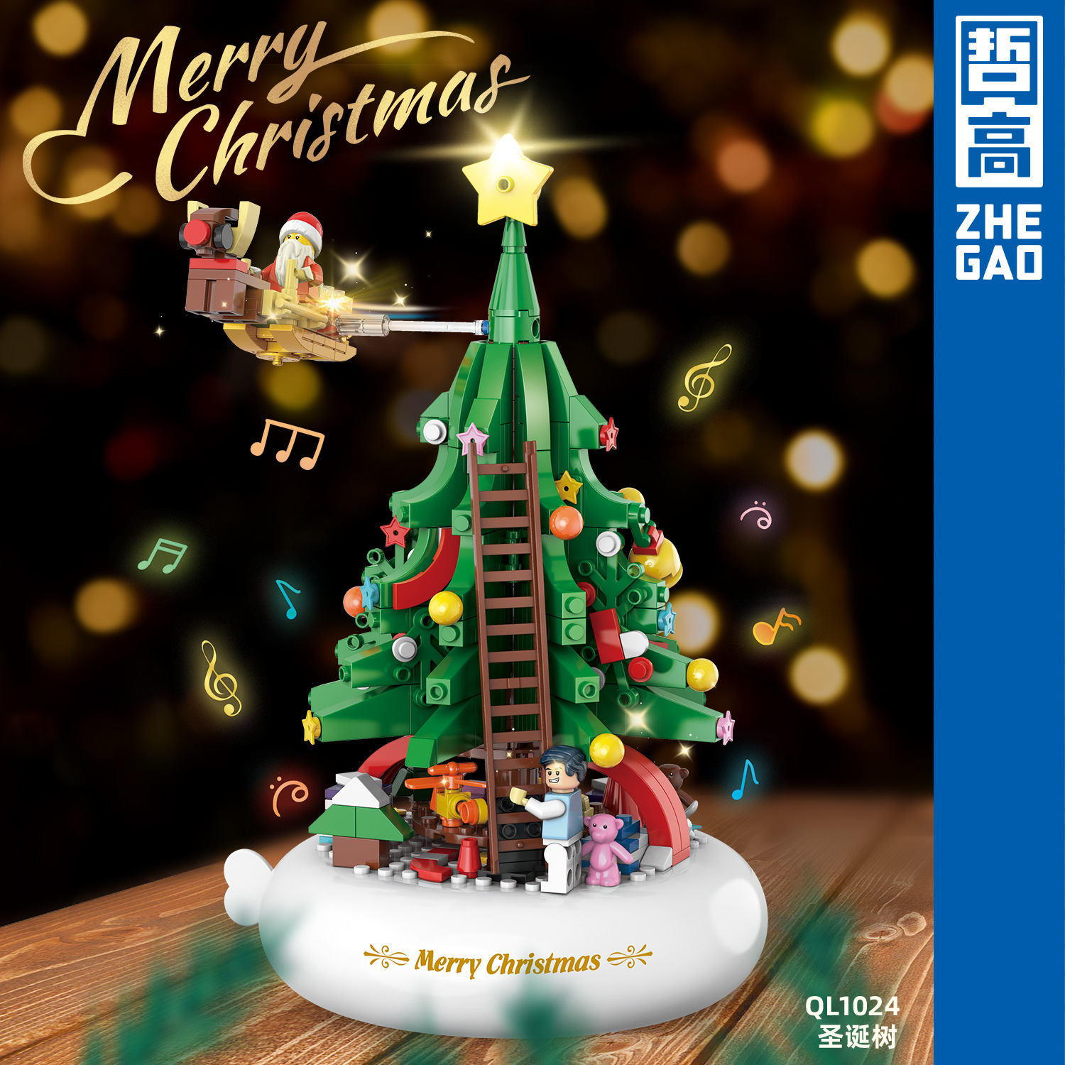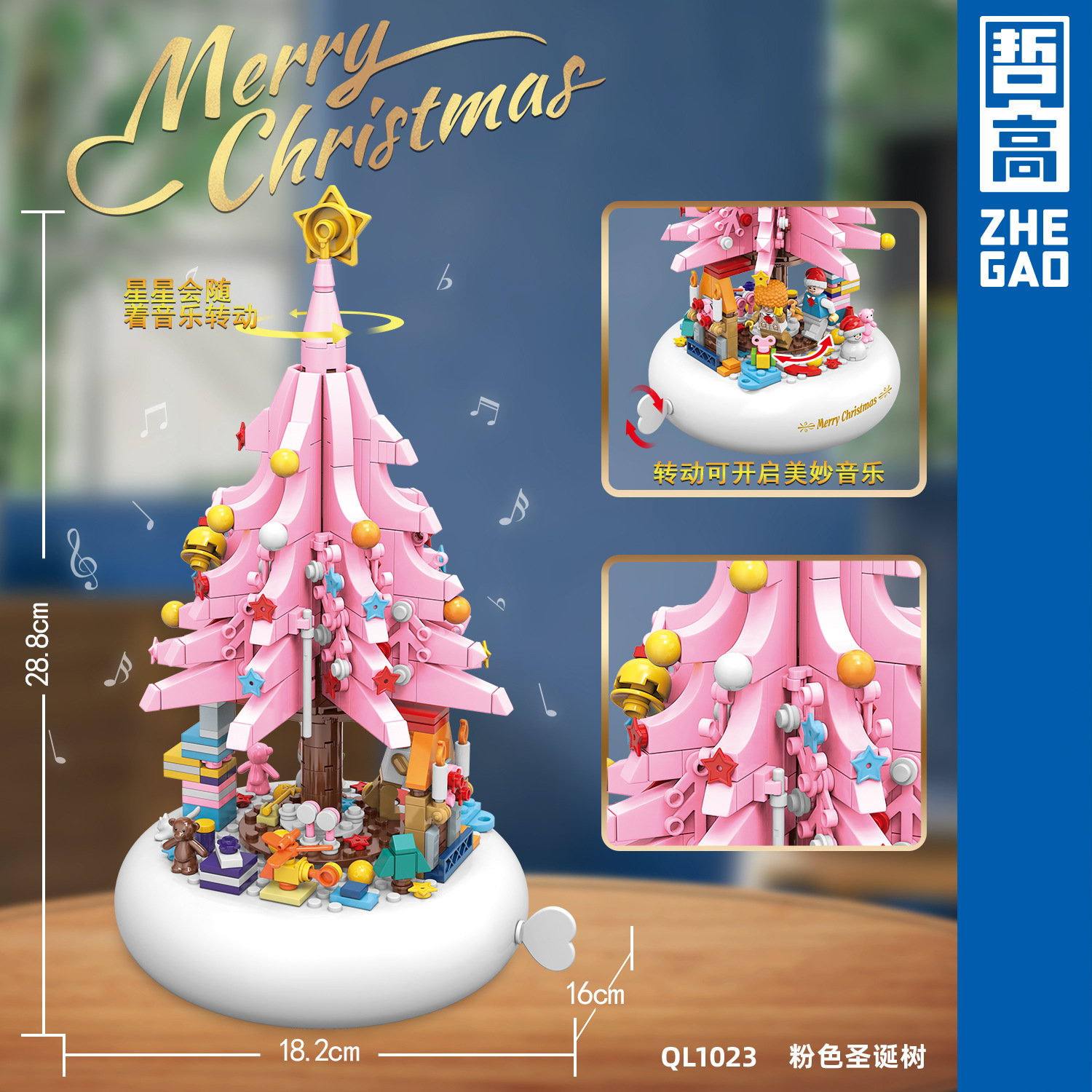 Zhegao 1023-24 Pink and Green Christmas Tree diy building Blocks Children's Assembly Educational Girls' Toys Music Box wholesale