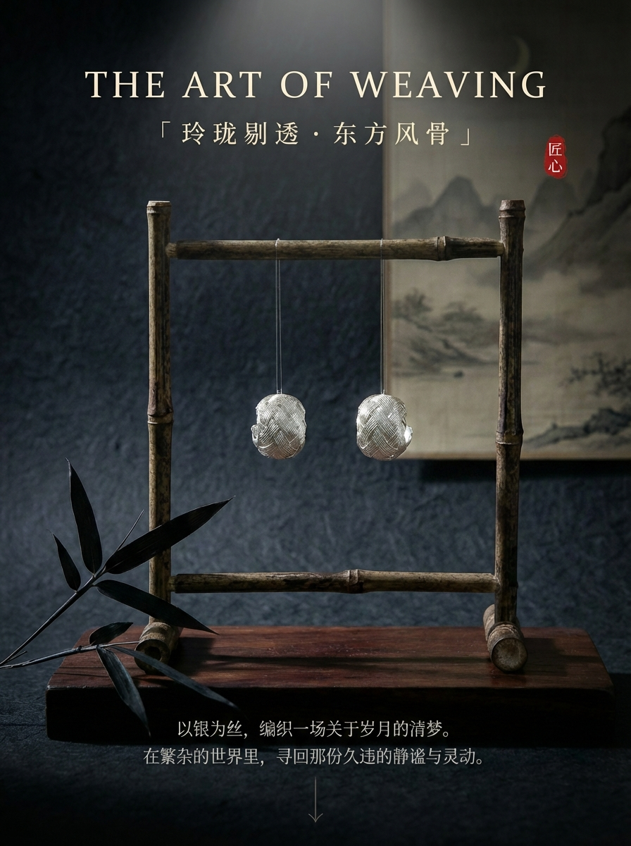 "Zhi Yue Qing Hui Three-dimensional Half-moon shell-shaped earrings in 925 sterling silver precision craftsmanship.