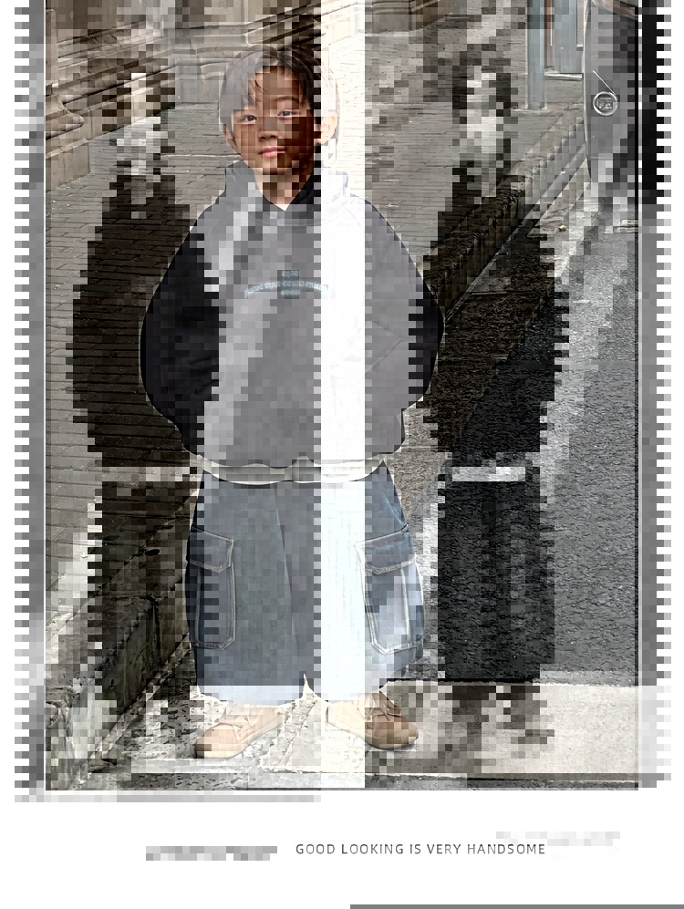 Zhongda Tong's American retro hooded sweatshirt for autumn and winter is a laid-back, loose and thickened one-piece velvet children's sweatshirt trend