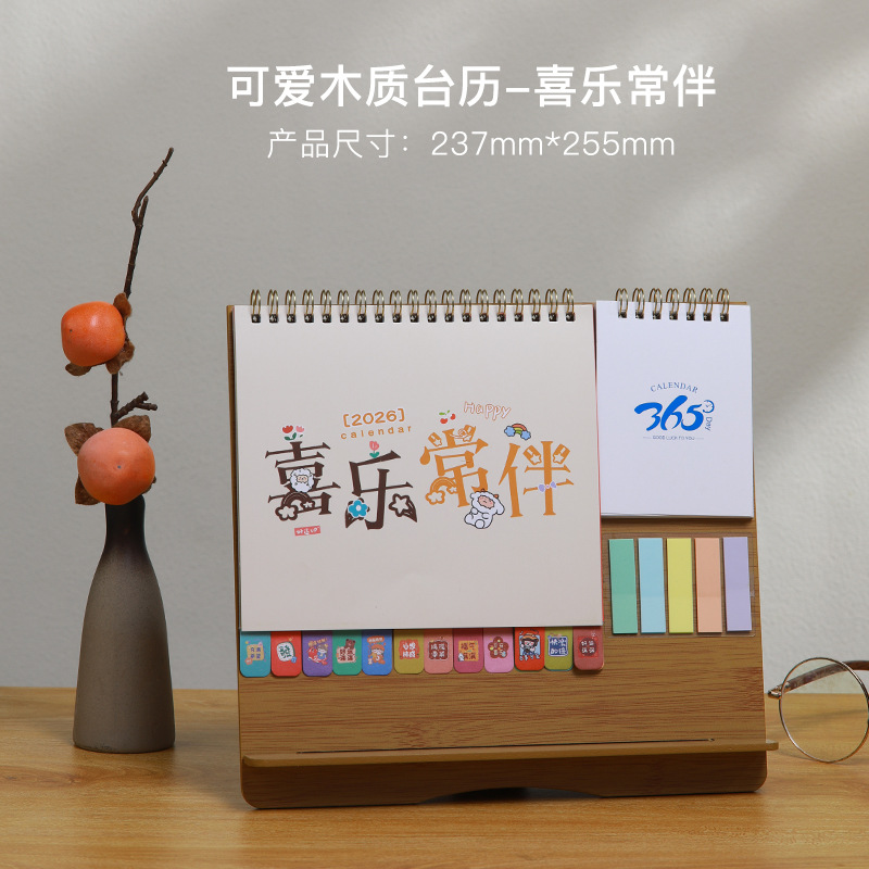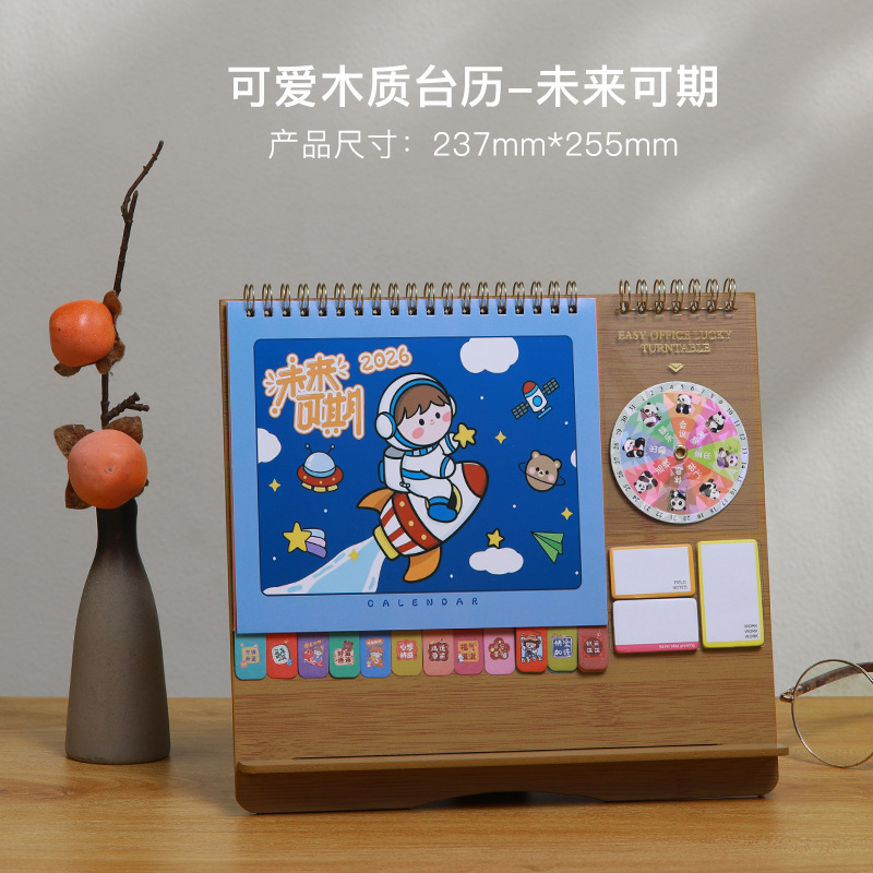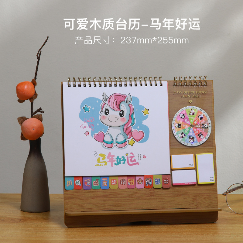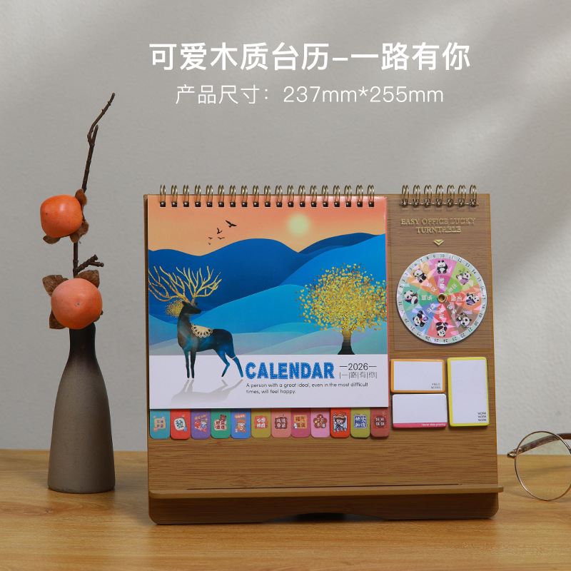 Zhouzhou Calendar 2026 Lucky Wheel Creative Multi-functional Advertising Calendar Wooden Stand Desk Calendar Korean-style Sticky Note Desk Calendar