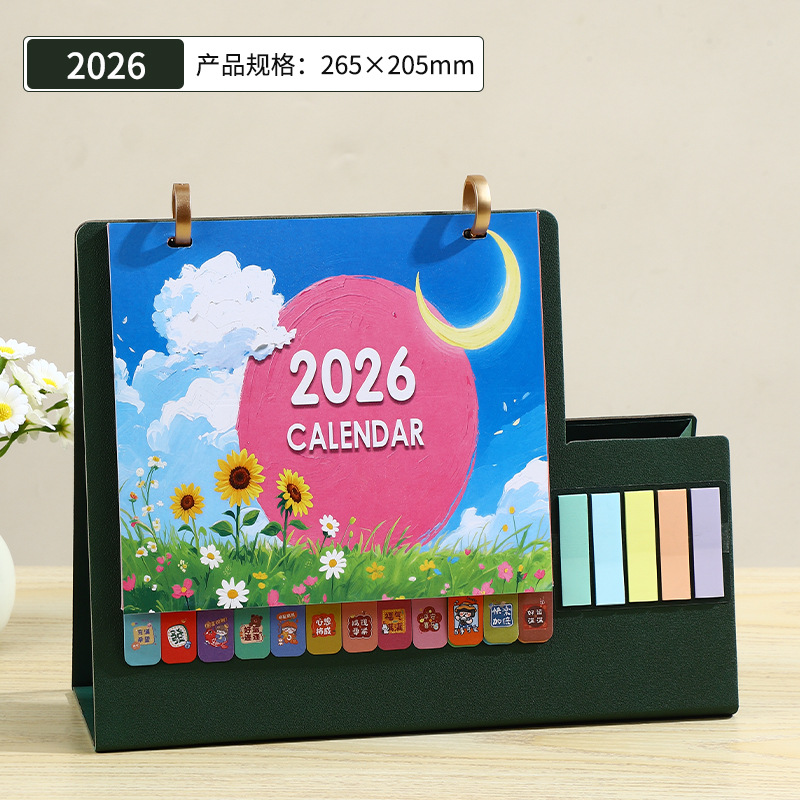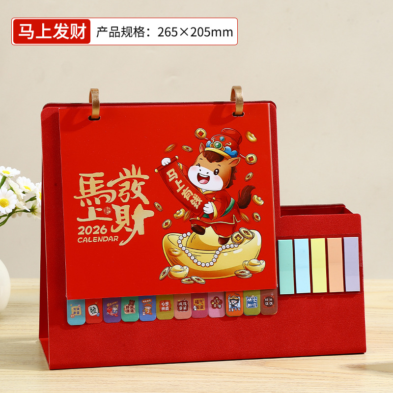 Zhouzhou Calendar 2026 Year of the Horse Chinese Style Leather Pen Holder Desk Calendar Office Note-taking Advertising Desk Calendar Factory Direct Sales