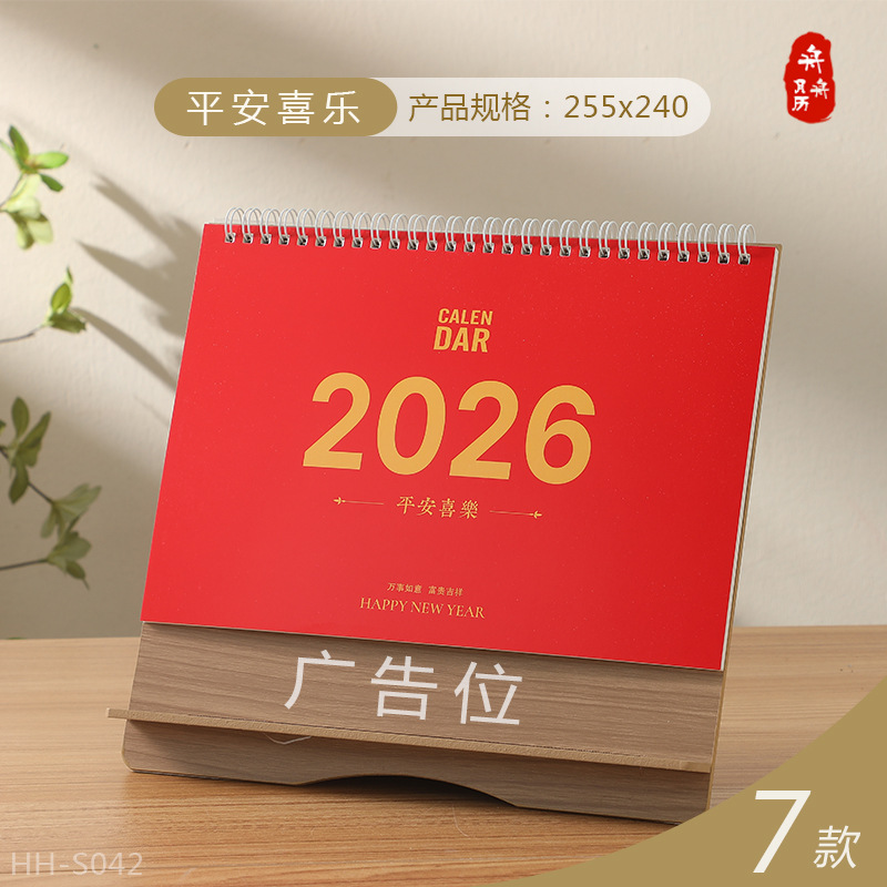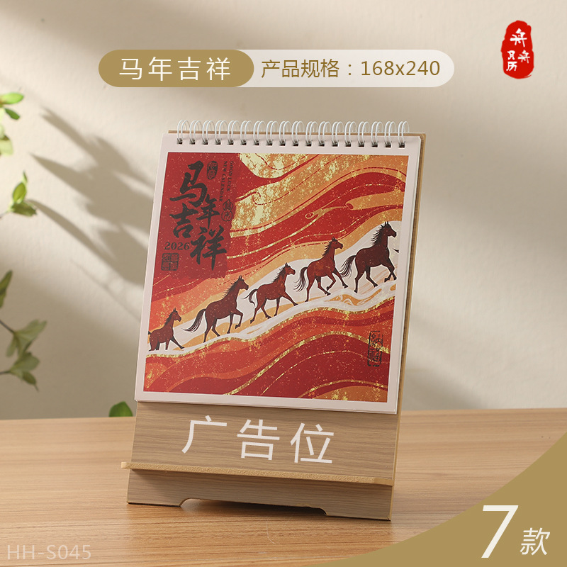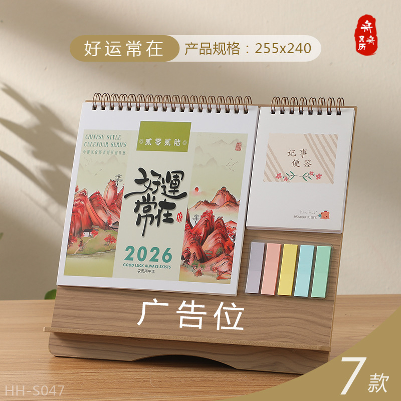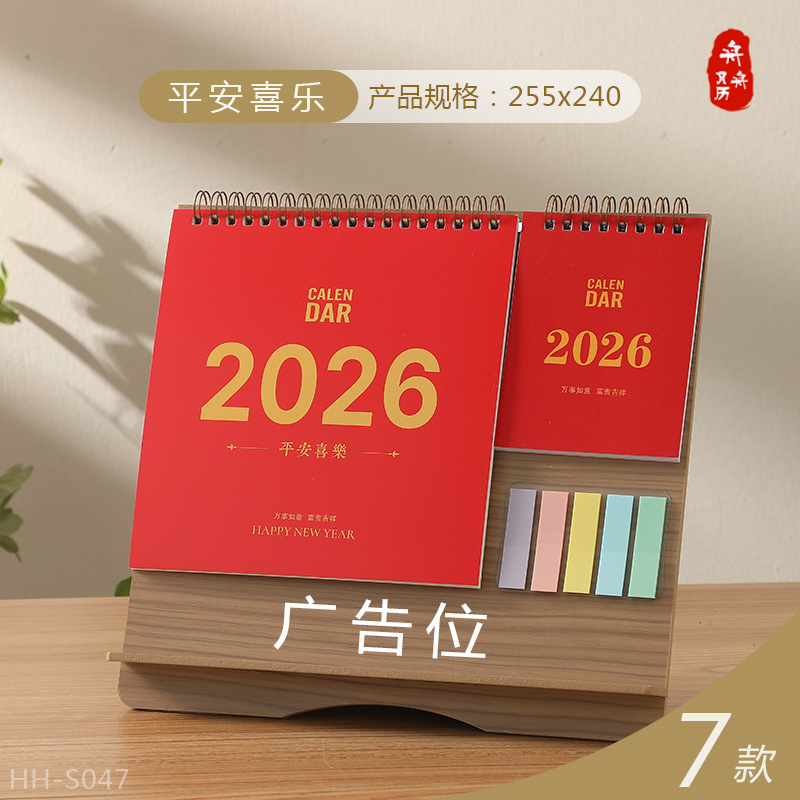 Zhouzhou Calendar 2026 Year of the Horse Desk Calendar Large Korean-style Wooden Frame Desk Calendar Office Note-taking Advertisement Custom Factory Direct Sales