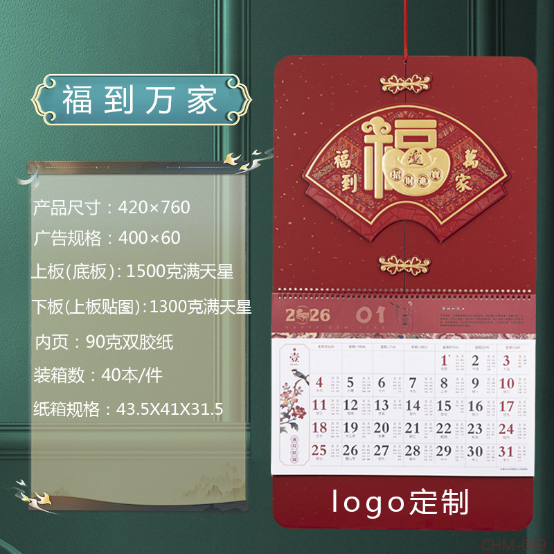 Zhouzhou Calendar 2026 Year of the Horse "Fu" Character Pendant in Large six-page format, Chinese-style three-dimensional art Fu pendant advertising custom calendar