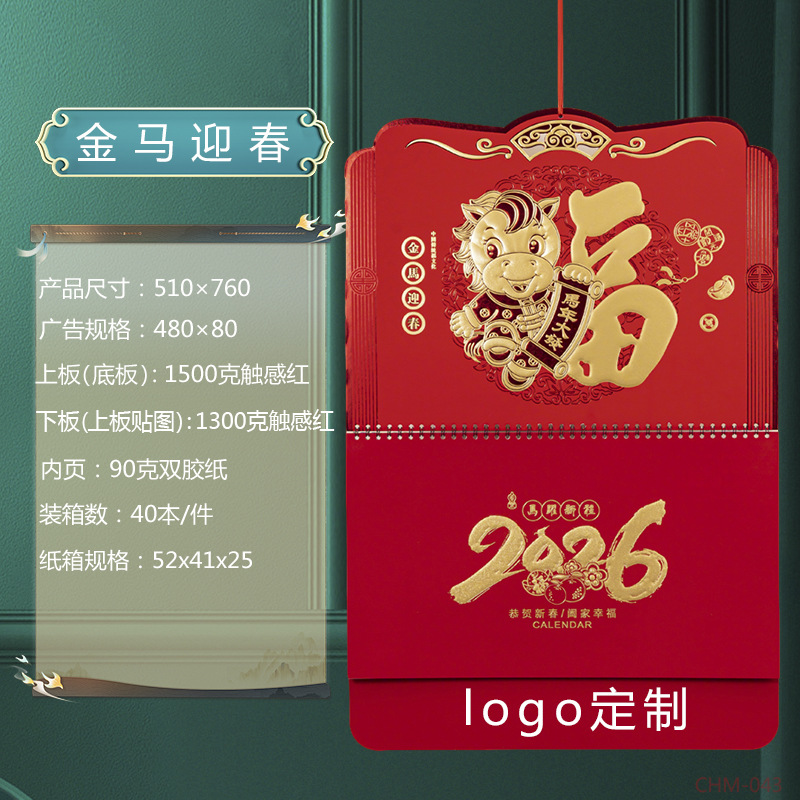 Zhouzhou Calendar 2026 Year of the Horse Full of Stars Three-dimensional Window Flower Blessing Plaque, generous four-opening touch gold-carved Blessing character hanging plaque