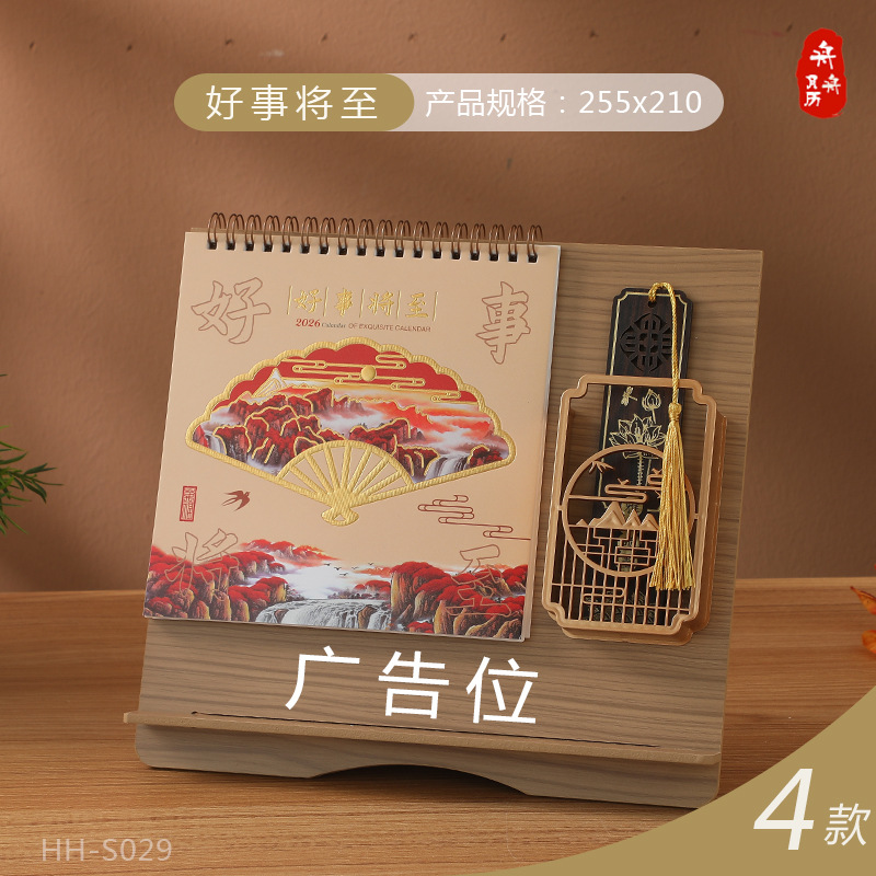 Zhouzhou Calendar 2026 Year of the Horse Large Countdown Art Calendar, pen holder Bookmark, Chinese-style large grid note-taking desk calendar