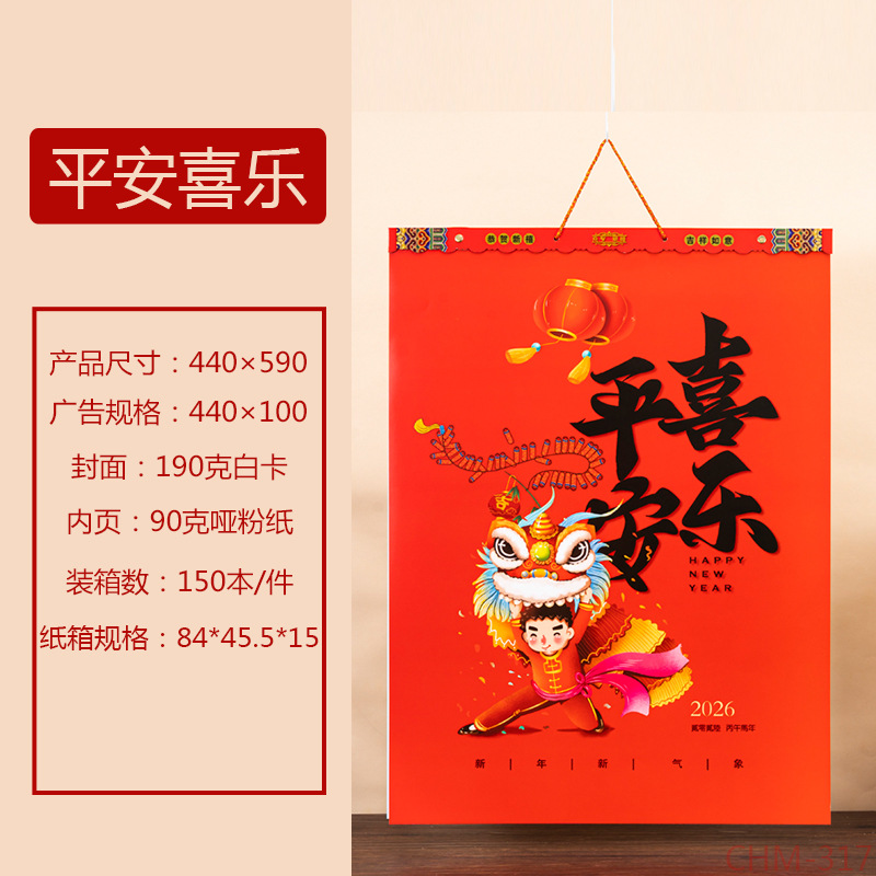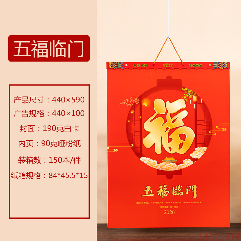 Zhouzhou Calendar 2026 Year of the Horse UV Relief Craft Wall Calendar Large four-page Artistic Calendar Advertisement Customization