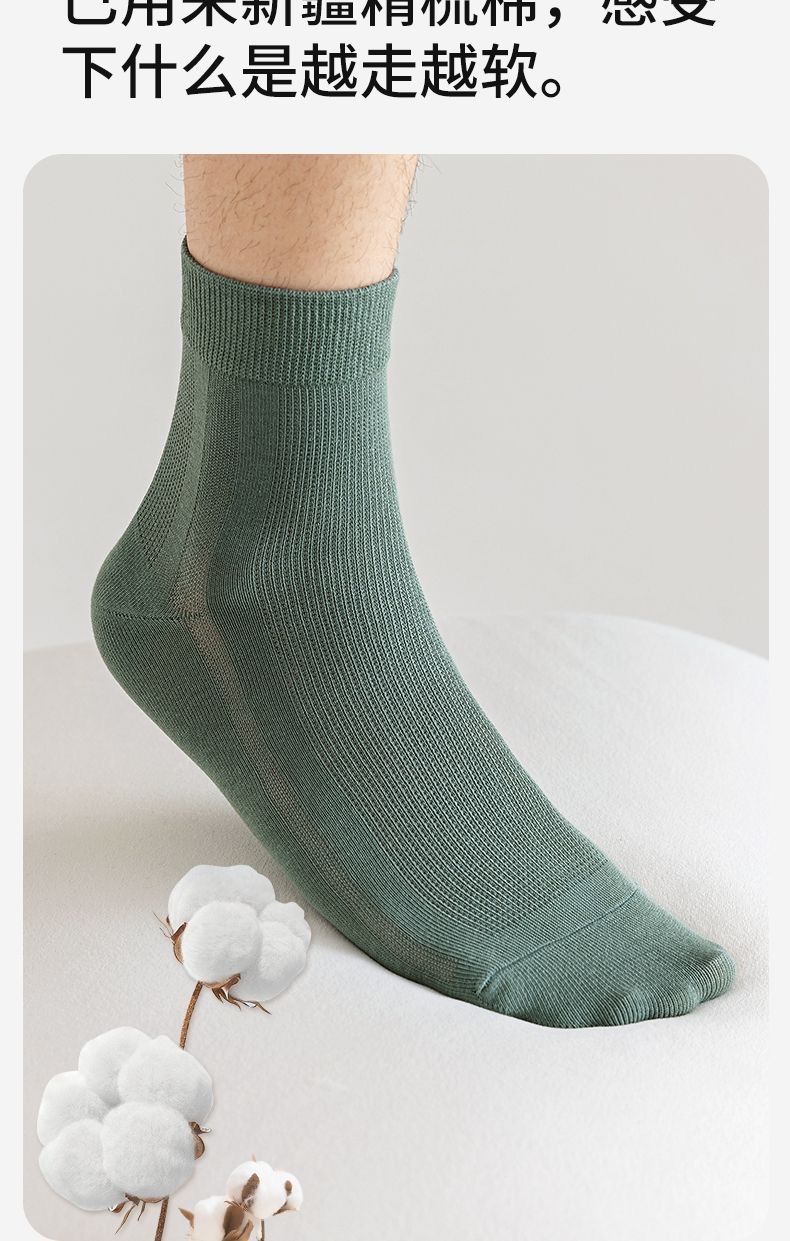 Zhuji summer thin mesh anti-odor men's mid-calf antibacterial, anti-odor, sweat-absorbing and breathable pure cotton sports socks for men