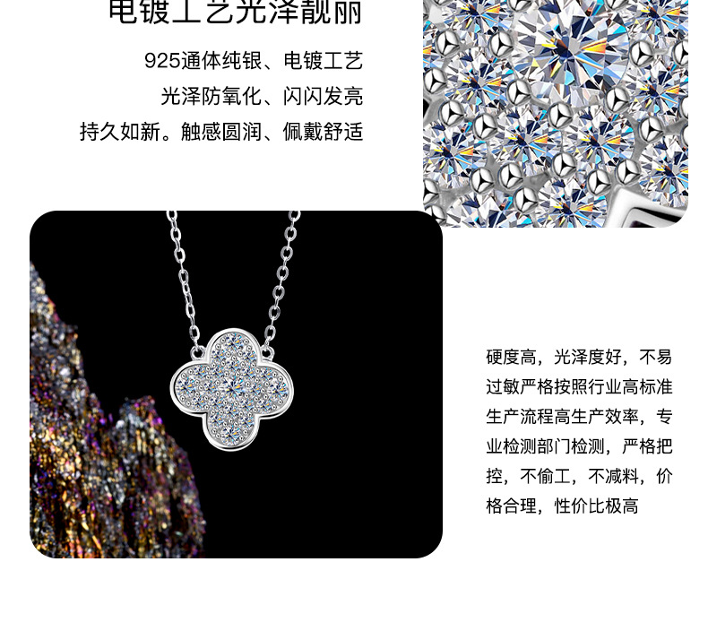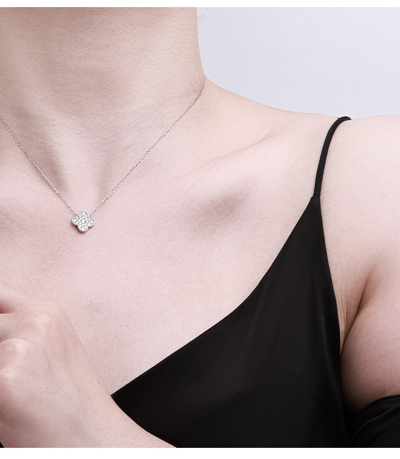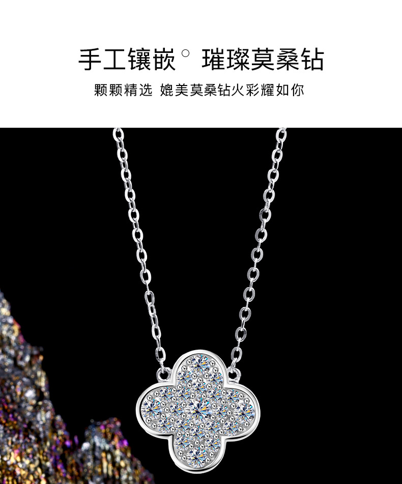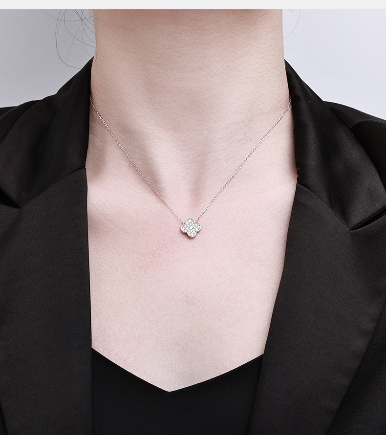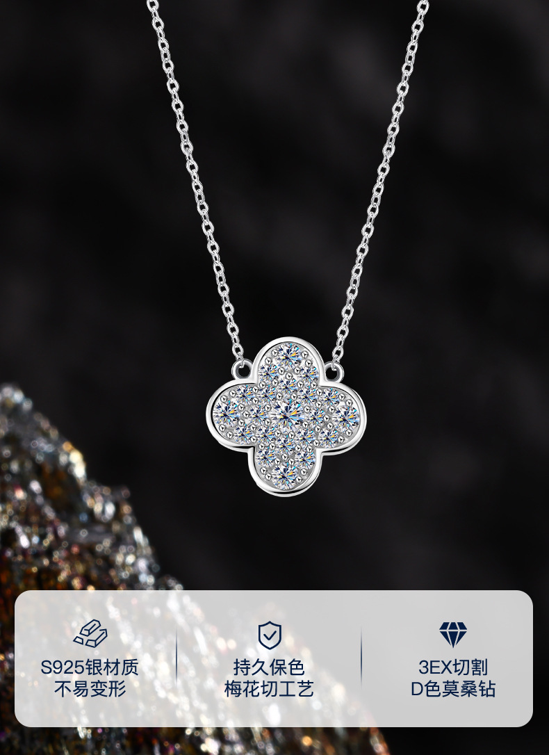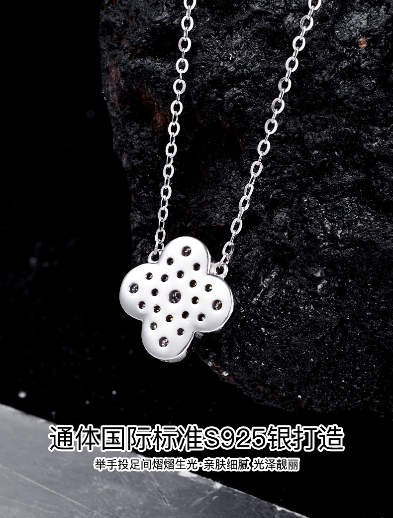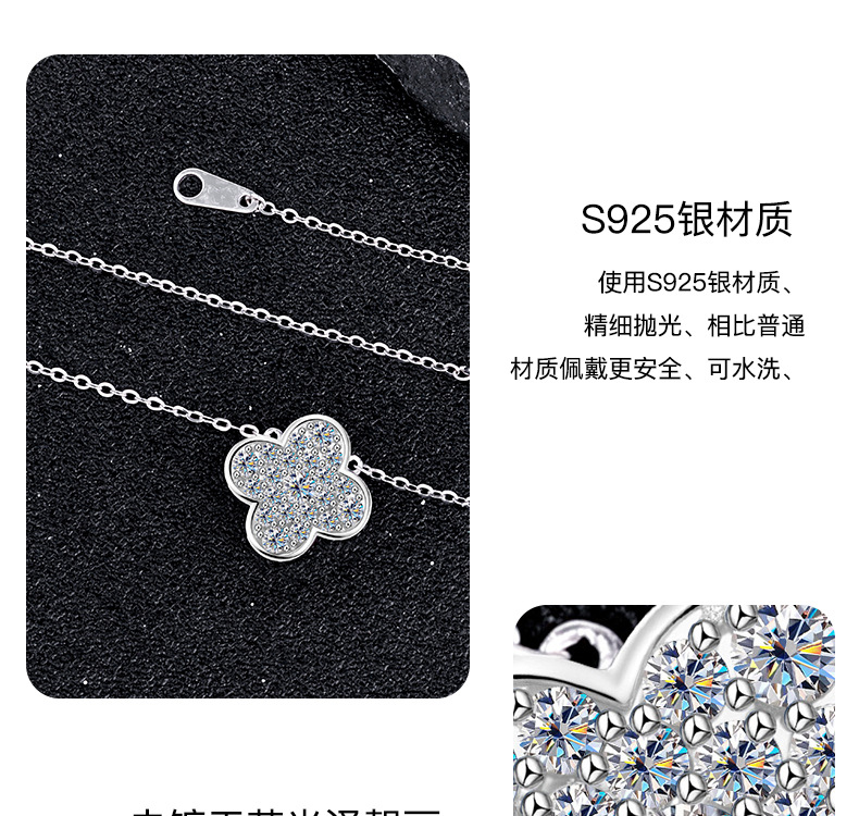Zhuoheng Select s925 Pure Silver four-leaf Clover Necklace, high-end and light luxury Moissanite collarbone chain, non-fading Valentine's Day gift necklace