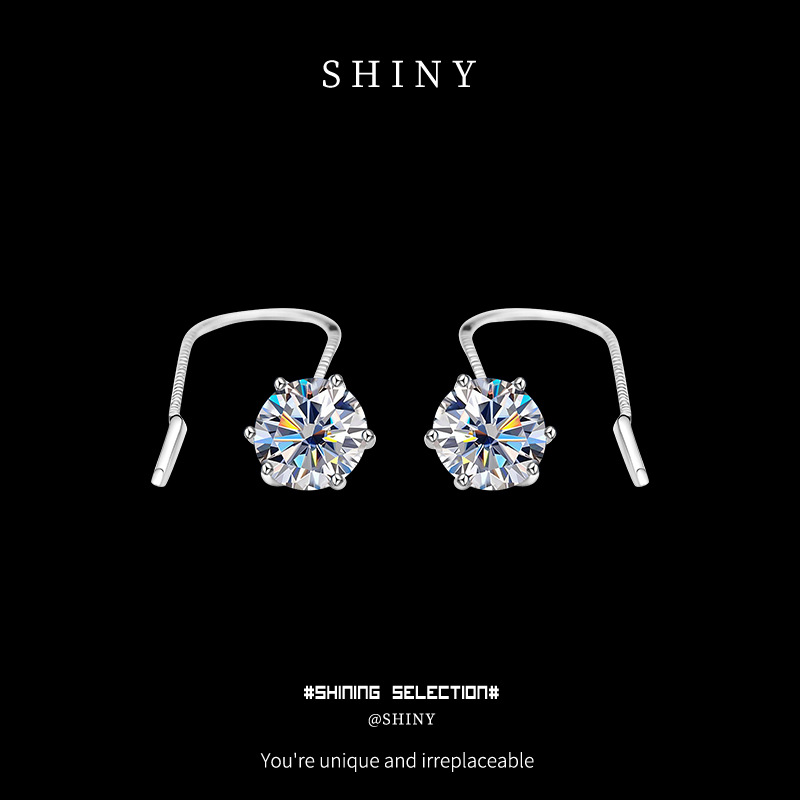 Zhuoheng Select S925 pure silver Moissanite stud Earrings, a classic six-prong stud earrings for women, a cross-border bestseller, high-end and light luxury ear line earrings