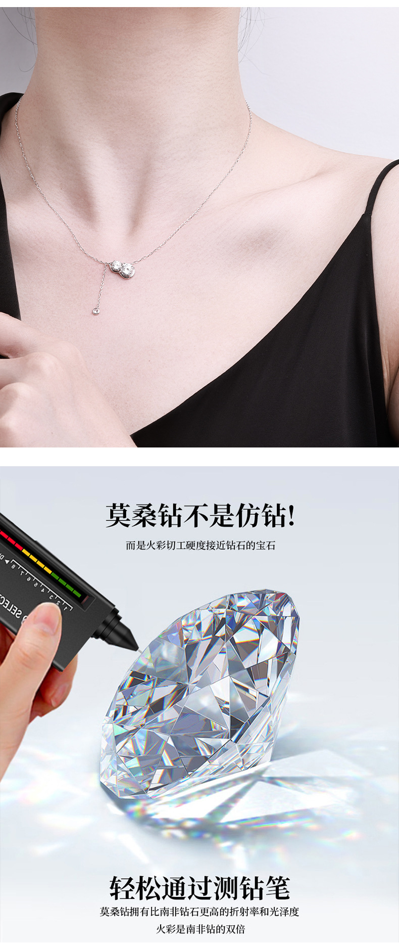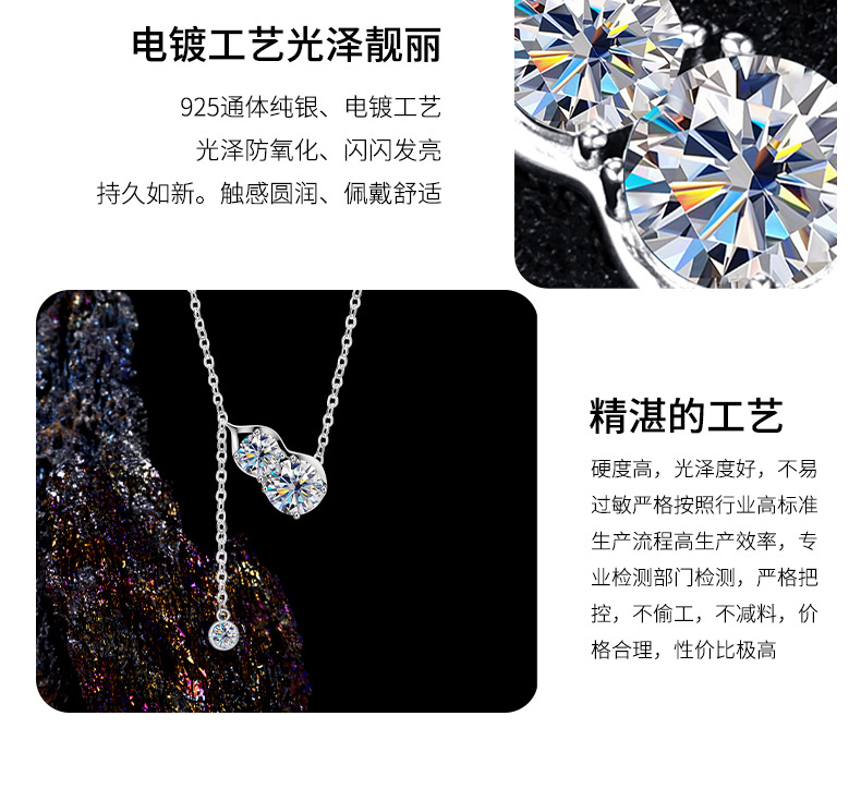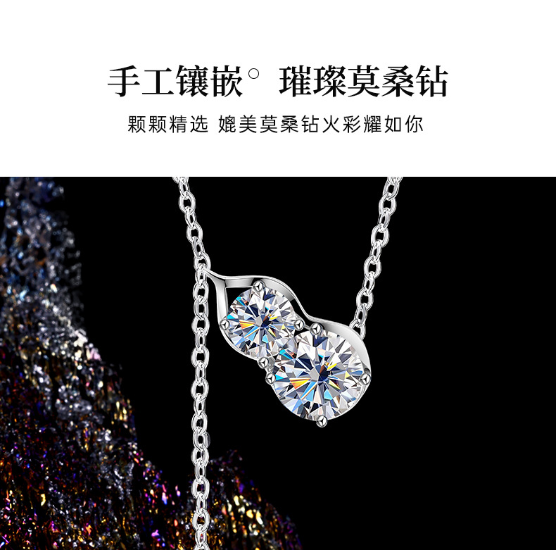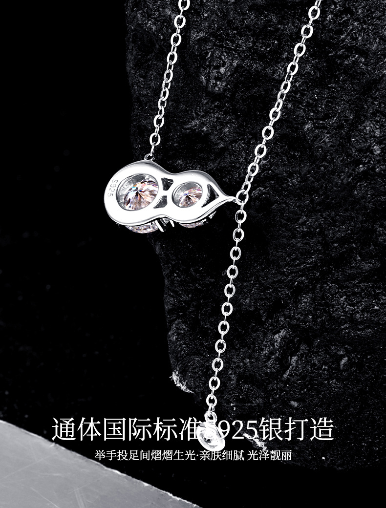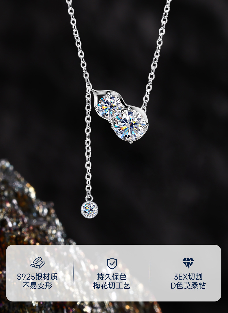 Zhuoheng Select S925 sterling Silver Ruyi Gourd Necklace, women's retro new Chinese style tassel collarbone chain, summer high-end feel, slightly inlay Mosan