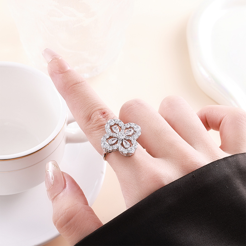 Zhuoheng Selection 2026 Classic Super Sparkling Four-leaf Clover Micro-inlay Mosan High-end One-piece Mosquito Coil, Versatile Four-leaf Clover Cross-border Ring from Europe and America