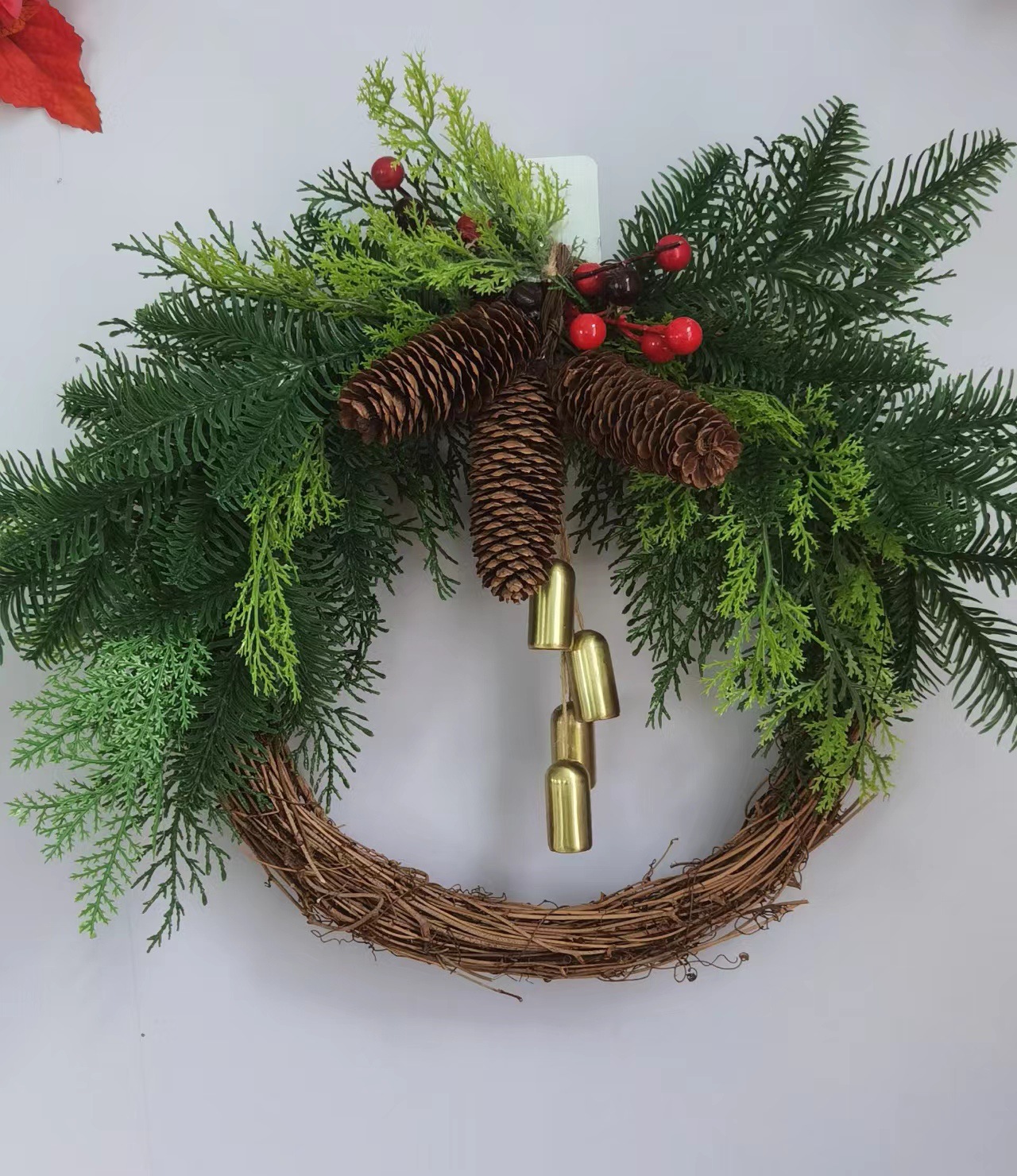 Zonghong's new Christmas decorative wreath, handcrafted simulation of Christmas bell wreaths, door hanging window display props
